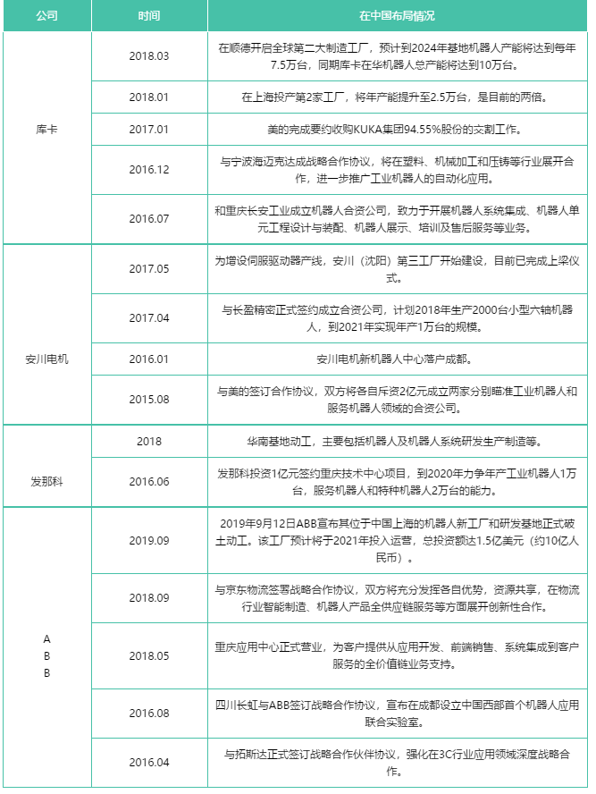 近年來,四大家族不斷加大在中國的業(yè)務(wù)布局,持續(xù)擴張產(chǎn)能并且將發(fā)展重點瞄準了中國市場。一方面,是出于高端行業(yè)的未來發(fā)展前景較好,四大家族對機器人行業(yè)景氣度的信心充足。另一方面,中國作為全球機器人最大需求市場,其地位日益重要,未來成長空間較大。