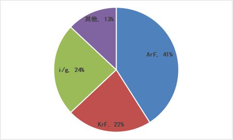 根據(jù)前瞻研究院數(shù)據(jù),半導體光刻膠領域中,i/g型光刻膠占總市場的24%,為4.15億美元;KrF型光刻膠占總市場的22%,為3.81 億美元;ArF型光刻膠占總市場的41%,為7.09億美元。