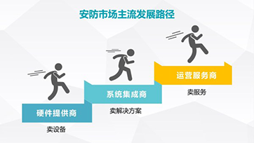 對比國外市場,我國安防運營服務(wù)規(guī)模占比顯著偏低,將成為廠商未來布局的重點。因此要加快運營服務(wù)市場發(fā)展步伐。安防運營服務(wù)是安防產(chǎn)業(yè)的重中之重,是全球安防產(chǎn)業(yè)未來發(fā)展的趨勢。在技術(shù)升級、產(chǎn)品同質(zhì)化和成本的降低的背景下,產(chǎn)品市場的利潤空間逐漸被壓縮,從硬件提供商(賣設(shè)備)——系統(tǒng)集成商(賣解決方案)——運營服務(wù)商(賣服務(wù))已成為主流發(fā)展路徑。