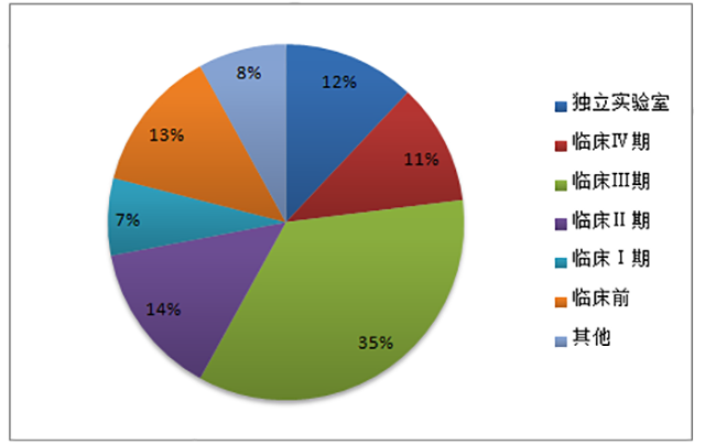 據(jù)美國臨床試驗(yàn)數(shù)據(jù)庫等數(shù)據(jù)來源顯示,2014年全球 CRO 市場收入約 70%來自臨床市場。其中,臨床Ⅱ和臨床Ⅲ期占了全部收入的 50%左右。我國CRO市場臨床研究占到近60%。其中,臨床I至III期市場合計(jì)約 37%,占比相對較低,且服務(wù)水平尚有一定提升空間。近年來,隨著國內(nèi)大中型 CRO 企業(yè)在臨床試驗(yàn)領(lǐng)域與跨國藥企開展合作,積累了越來越多的優(yōu)質(zhì)客戶和臨床試驗(yàn)研究經(jīng)驗(yàn),服務(wù)水平也正在快速提高,并逐步向國際先進(jìn)水平靠攏。