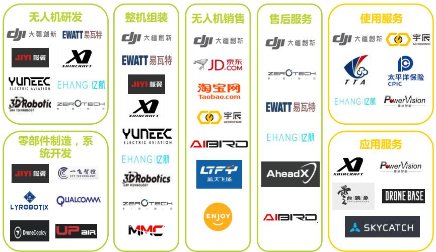 無人機產(chǎn)業(yè)鏈除了傳統(tǒng)的生產(chǎn)制造環(huán)節(jié)外,還出現(xiàn)了針對用戶使用過程的社交、保險以及數(shù)據(jù)采集、航拍等基于應(yīng)用場景的產(chǎn)業(yè)服務(wù)。