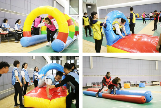 活動開始前,公司黨支部書記、副總經(jīng)理別志立發(fā)表了動員講話,鼓勵大家充分珍惜并借助這次難得的機會,強化創(chuàng)新意識與探索精神,提高團隊凝聚力和戰(zhàn)斗力,充分展現(xiàn)匯創(chuàng)人朝氣蓬勃、奮發(fā)進取的精神風貌。拓展訓練活動采取分組建隊的方式開展,經(jīng)過一番“頭腦風暴”,一個個響亮的團隊口號、一首首嘹亮的隊歌和富有特點的團隊logo逐一精彩亮相,個性鮮明、充滿力量的團隊形象拉開了活動的序幕?;顒又校蠹蚁嗷ヅ浜?,團結(jié)協(xié)作,完成了“超級障礙賽”、“螃蟹過河”、“指壓板跳繩”等一系列以激發(fā)個人潛能、增強團隊歸屬感為主旨的拓展項目。