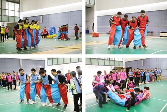 “螃蟹過河”挑戰(zhàn)團隊協(xié)作與配合。每四人組成一只可愛的“螃蟹”,在最短的時間內(nèi)往返通過獨木橋的隊伍即獲得勝利。螃蟹服形態(tài)臃腫,褲腿相連,給隊員們增添了不少比賽難度,參賽隊員們在極短的時間內(nèi)商量戰(zhàn)術,迅速統(tǒng)一思想,賽場上他們口號整齊,步伐一致,為了完成同一個目標而齊心協(xié)力、共同努力,在日常工作中積累的信任與默契展露無遺。